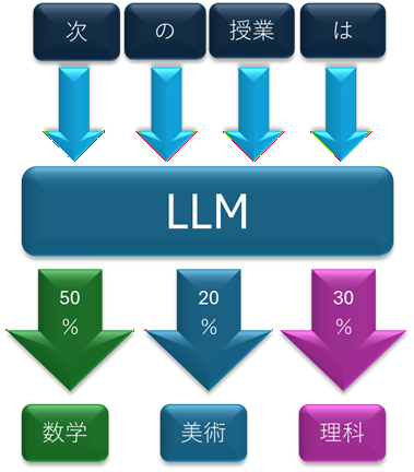 次の授業は‥‥に続く言葉は何か? という命題に対して、正答である確率が高い単語を選んでいるというイメージです。