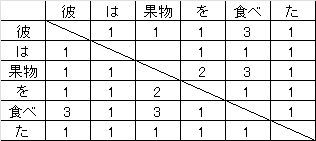 このような形に分解され、果物-それ-リンゴは関連性が高い=重い という形で重み付けを行います。